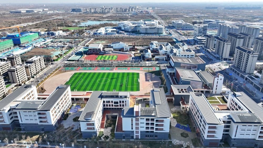 雄安新區(qū)啟動(dòng)區(qū)的北京四中雄安校區(qū)和雄安史家胡同小學(xué)(無(wú)人機(jī)照片)。2023年11月30日新華社記者牟宇 攝