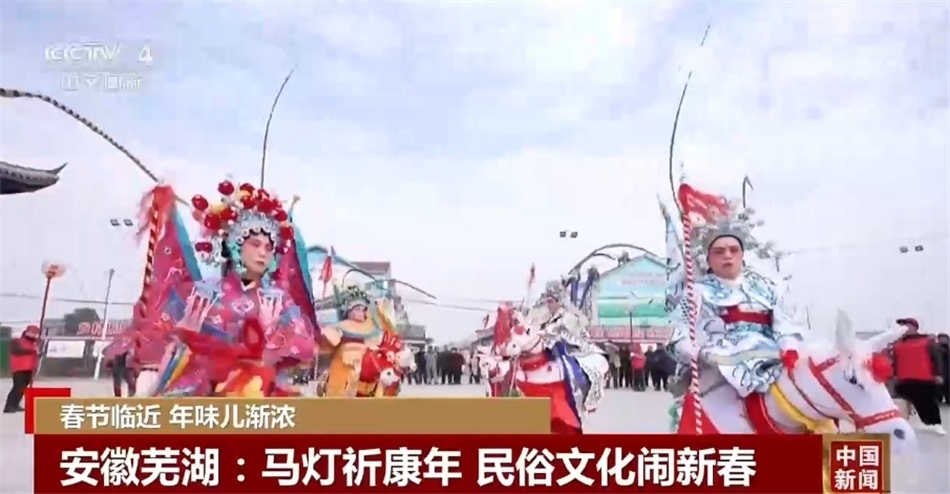 在安徽蕪湖花橋鎮(zhèn)咸定村,70多人組成的馬燈隊伍正在進行精彩的表演。村民們身著戲裝,一手提馬首,一手揚馬鞭,不斷變換陣式,引得人們連連叫好。