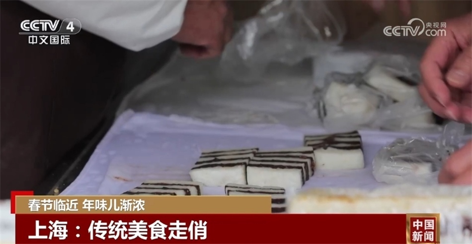 在上海,許多古鎮(zhèn)張燈結彩迎接春節(jié),老字號食品店也排起了長龍。在一家糕團店前,購買傳統(tǒng)糕點的顧客絡繹不絕,崇明糕、定勝糕、紅糖糕等各具特色的傳統(tǒng)糕點,不僅香甜美味,還能為新年討得一個好彩頭。