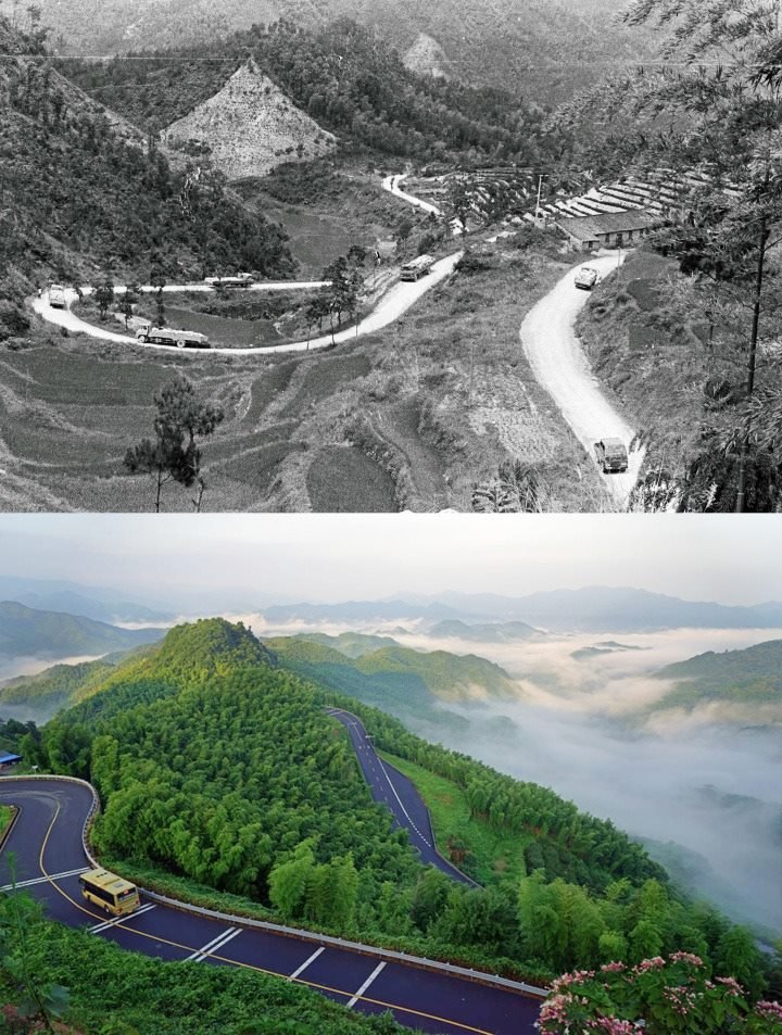 通往余姚橫坎頭村的路前后對(duì)比圖。余姚梁弄鎮(zhèn)供圖