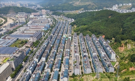 長(zhǎng)廣煤礦安置小區(qū)其中一期——金水苑小區(qū)鳥(niǎo)瞰圖。陳鮮忠工作室供圖