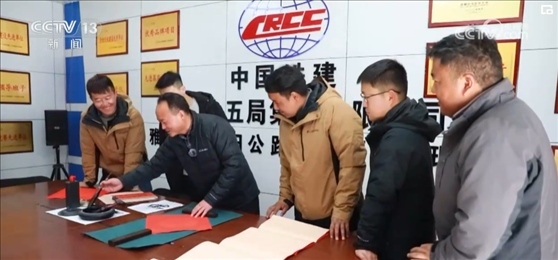 今年恰逢藏歷新年和農(nóng)歷春節(jié)同一天,堅守崗位的同事們一起慶祝新年的到來,項目部的藏族小伙還用藏文寫下了新年祝福。