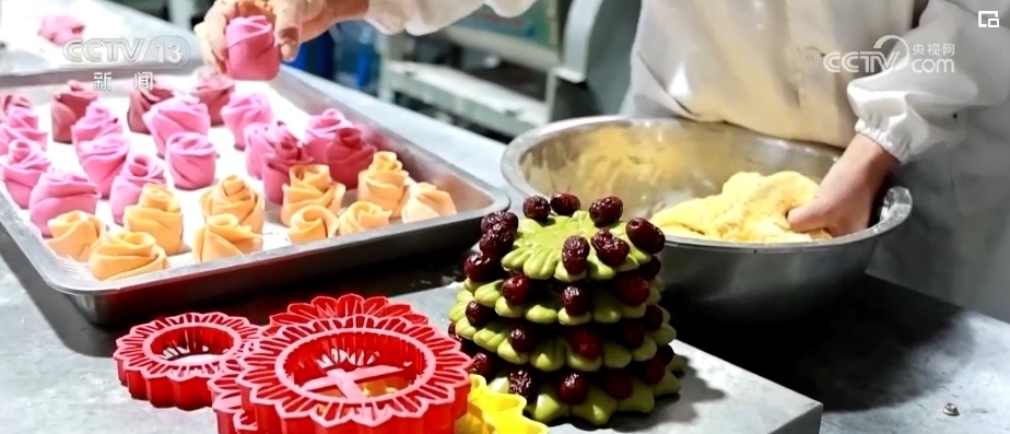 不僅有面花,北方的餐桌還得有饅頭。在山東,饅頭不僅是過年的標(biāo)配,也是臘月里走俏的年貨。臨近春節(jié),濟(jì)南的一家饅頭房里,大家熱火朝天地忙碌趕工,訂單量翻了三翻。