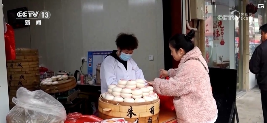 對于當(dāng)?shù)厝藖碚f,買“紅印饅頭”的日子也就是闔家團(tuán)聚的日子。一大桌子的年夜飯,“紅印饅頭”是壓軸菜,不少市民專程前來備年貨。