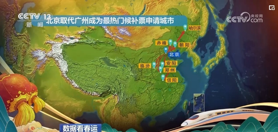 申請(qǐng)候補(bǔ)票的熱門路線2月7日出現(xiàn)新變化,北京取代廣州成為候補(bǔ)票申請(qǐng)最熱門的出發(fā)城市。從北京到朝陽(yáng)、赤峰、哈爾濱、鄭州、臨汾、信陽(yáng)、安陽(yáng)這7個(gè)城市的候補(bǔ)票最為緊張。而從上海出發(fā)到鄭州、武漢、周口、商丘等中部城市的候補(bǔ)票也比較緊張。