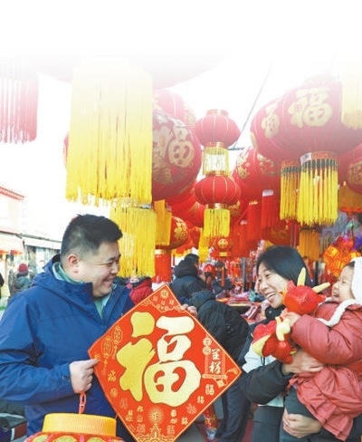 河北省唐山市,市民在挑選“福”字。朱大勇攝(人民視覺(jué))