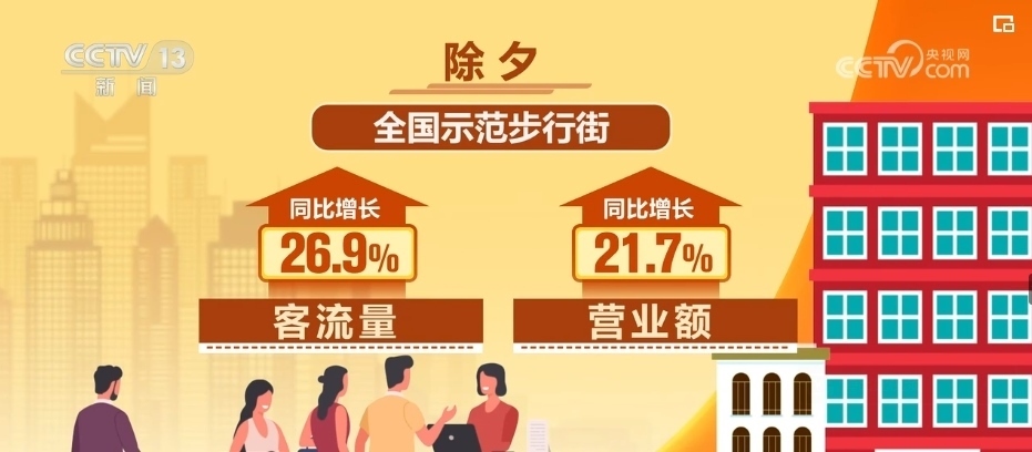 據(jù)商務(wù)部大數(shù)據(jù)監(jiān)測(cè),2024年除夕,部分重點(diǎn)大型超市即時(shí)零售銷售額同比增長約20%。除夕當(dāng)天,重點(diǎn)電商平臺(tái)在線餐飲銷售額同比增長40.8%,全國示范步行街客流量、營業(yè)額同比分別增長26.9%和21.7%。