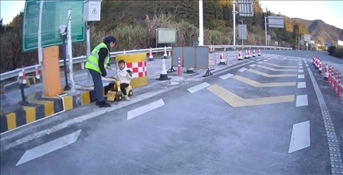 ·5歲男孩開(kāi)電動(dòng)玩具車(chē)上高速,被收費(fèi)員及時(shí)發(fā)現(xiàn)。
