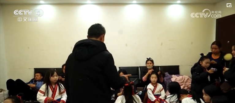 學(xué)生們要放寒假了,郭云兵的寒假計(jì)劃已經(jīng)排的滿(mǎn)滿(mǎn)當(dāng)當(dāng),其中一項(xiàng)就是帶領(lǐng)朗誦團(tuán)參加當(dāng)?shù)厣賰捍和淼匿浿?。許多新加入的成員還是第一次站上舞臺(tái),上場(chǎng)前郭云兵給他們加油打氣。