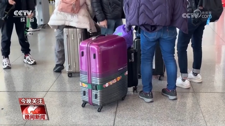 離家時的后備箱被裝得滿滿當當,行李箱也不例外。在各地的車站,旅客們大包小包提著行李,全國各地的土特產(chǎn)也在這里匯聚一堂。
