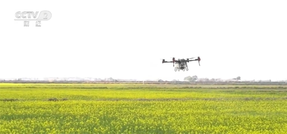 在江西省南昌市新建區(qū)的這個稻油輪作示范基地,金黃的油菜花競相開放?;êI峡眨瑹o人機在專業(yè)人員的操控下,均勻地將肥料和農(nóng)藥噴撒至油菜田間,為油菜提供生長的能量和養(yǎng)分,抑制病菌繁殖,提高油菜結(jié)莢率及產(chǎn)量。