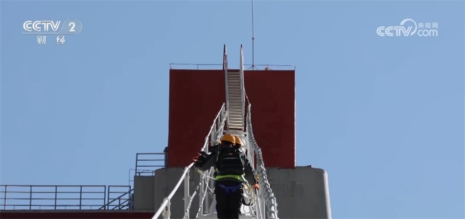 經(jīng)過30分鐘左右的攀爬,他們到達(dá)了整座大橋最高的位置,開始檢查鞍罩。鞍罩就是像馬鞍一樣的罩子,主要是為了保護(hù)邊跨和主跨的連接部位,鞍罩內(nèi)還裝有大橋健康檢測(cè)系統(tǒng)和除濕系統(tǒng),實(shí)時(shí)監(jiān)控大橋的健康狀態(tài)。