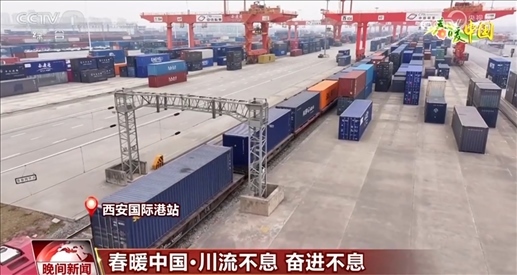 忙碌起來的不只是港口,西安國際港站汽笛聲聲、班列轟鳴,龍門吊正加緊作業(yè)。這輛滿載光伏設(shè)備和新能源汽車等貨物的中歐班列,預(yù)計9天后將抵達目的地——烏茲別克斯坦塔什干。在這里,平均每1小時40分鐘就有一列中歐班列出發(fā)或到達?!耙粠б宦贰苯ㄔO(shè)讓西部成為開放前沿,開放是一種理念、一條路,更是一種胸襟。?