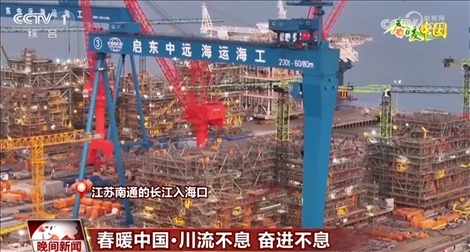 在江蘇南通的長江入???,一個個造型各異的“巨無霸”讓人震撼。眼前的這艘海上浮式生產(chǎn)儲油輪已經(jīng)進入最后的模塊吊裝施工階段。與此同時,自升式風(fēng)電安裝船、全球最大集裝箱船等重點高端產(chǎn)品不斷取得突破。長江入??谑墙K點也是起點,所謂突破就是將終點當(dāng)成起點,不停出發(fā)。