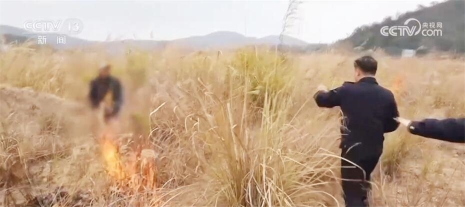 抵達(dá)現(xiàn)場后消防人員看到,一個村民正在林區(qū)附近邊吸煙邊焚燒雜草?,F(xiàn)場以冬茅草等易燃燒的植被為主,旁邊就是林區(qū),一旦起風(fēng),火勢可能會失控蔓延引發(fā)山火。