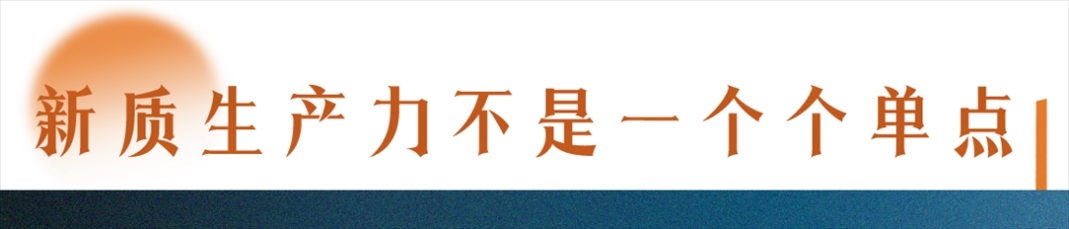 看懂了這一點(diǎn),也就看懂了我們發(fā)展新質(zhì)生產(chǎn)力的方式——新質(zhì)生產(chǎn)力不是一個(gè)個(gè)單點(diǎn),不是要一個(gè)個(gè)孤立地干,而是要基于我們龐大的產(chǎn)業(yè)生態(tài)優(yōu)勢(shì),在不斷的連接、碰撞中,加速釋放創(chuàng)新能力。