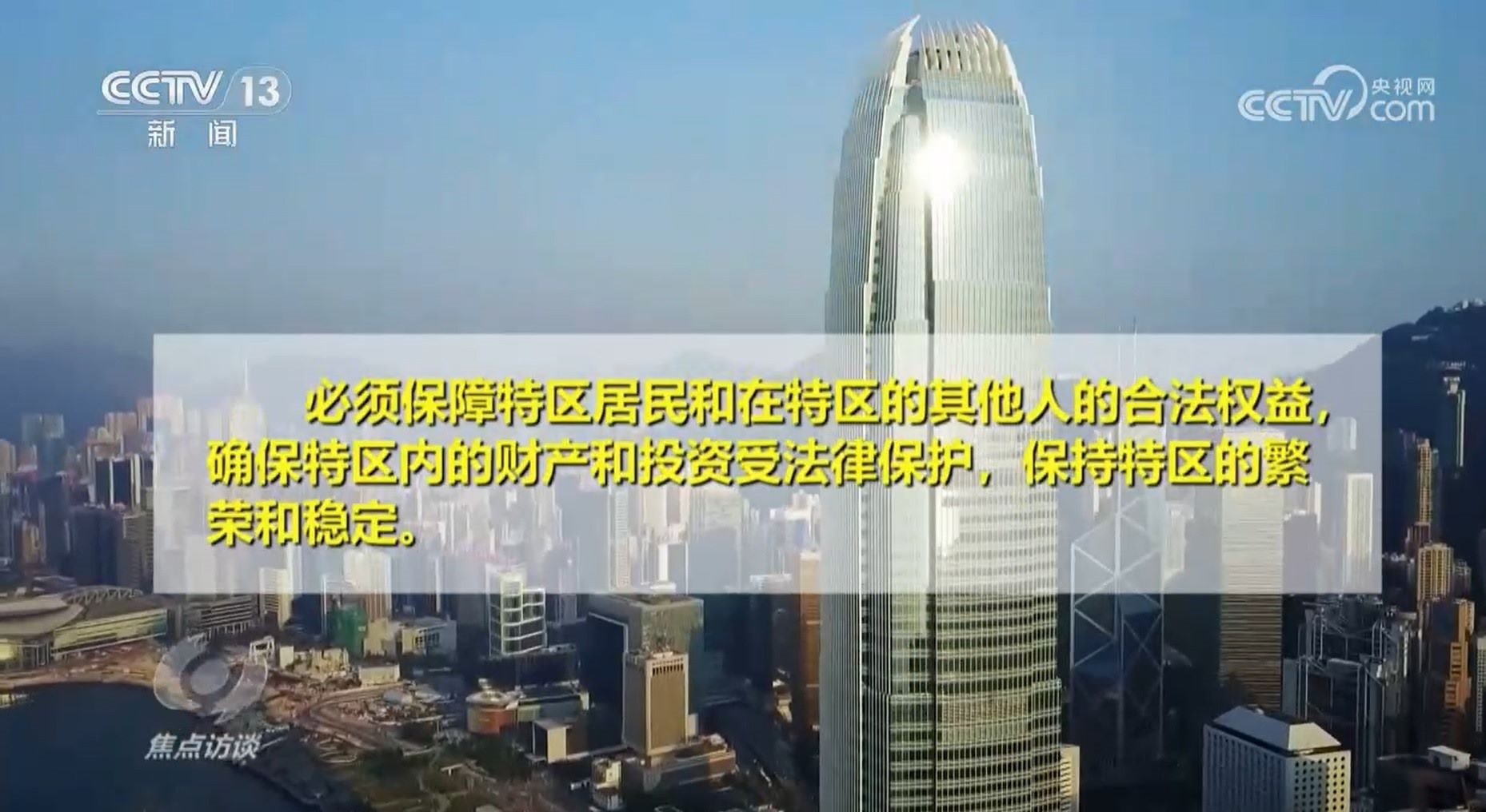 全國(guó)政協(xié)港澳臺(tái)僑委員會(huì)副主任屠海鳴:“香港應(yīng)該是一個(gè)法治城市,香港應(yīng)該是恢復(fù)往日繁榮穩(wěn)定,香港應(yīng)該更好搭乘中國(guó)高速度向前飛馳的列車。在這種狀況下,這次是天時(shí)地利人和,所以香港750萬(wàn)市民都感到由衷興奮、由衷喜悅、由衷高興。”