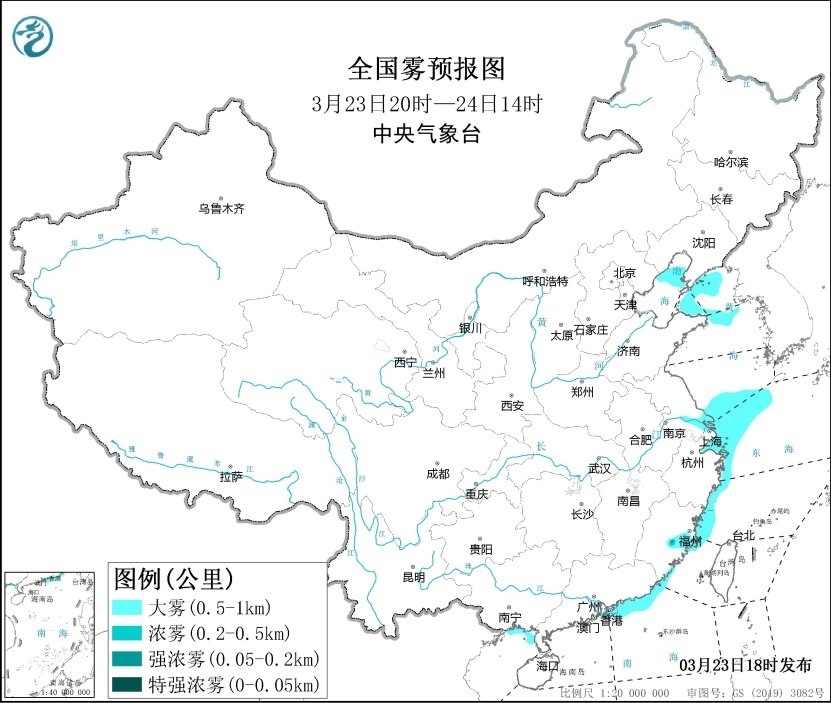 央視網(wǎng)消息:中央氣象臺3月23日18時繼續(xù)發(fā)布大霧黃色預警。預計,23日夜間至24日白天,渤海北部海域、渤海海峽、黃海北部海域、黃海中部和南部的部分海域、東海西部海域、遼東半島沿岸海域、山東半島北部沿岸海域、成山頭附近海域、長江口附近海域、杭州灣、舟山群島附近海域、浙閩沿岸海域、廣東東部沿岸海域、北部灣北部沿岸海域?qū)⒂心芤姸炔蛔?公里的大霧。此外,23日夜間至24日上午,江蘇南部、福建東部等地的部分地區(qū)有能見度不足1公里的大霧。
