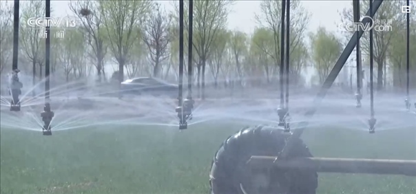 在50萬(wàn)畝集中連片高標(biāo)準(zhǔn)農(nóng)田示范區(qū),種糧大戶用上了雙翼式平移自行噴灌機(jī),根據(jù)墑情調(diào)整噴頭,來(lái)控制噴水量的大小,能節(jié)水三分之一左右。