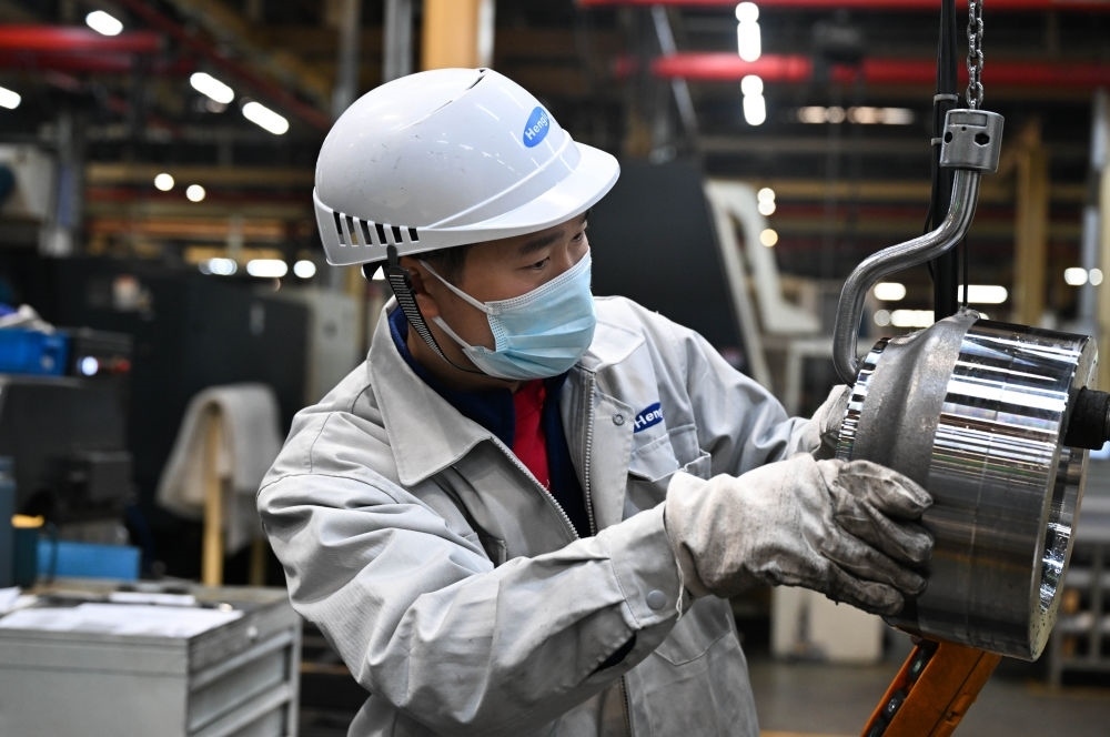 在位于常州市武進區(qū)的江蘇恒立液壓股份有限公司,工人在車間忙碌(2023年12月22日攝)。新華社記者 季春鵬 攝