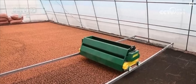 在黑龍江墾區(qū)共青農(nóng)場的智能水稻育秧大棚內(nèi),自動水稻播種機(jī)械正將稻種播撒在秧盤內(nèi)。育秧大棚接入了物聯(lián)網(wǎng)系統(tǒng)的智能調(diào)溫控水系統(tǒng),能有效增強(qiáng)大棚保溫性能、增加棚內(nèi)溫度。同時(shí),還接入了智能卷簾器、溫度傳感器等。
