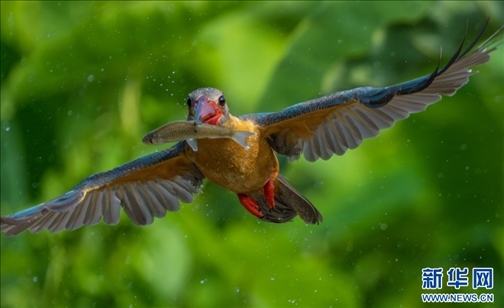 飛翔的鸛嘴翡翠(3月31日攝)。新華網(wǎng)發(fā)(高峰 攝)
