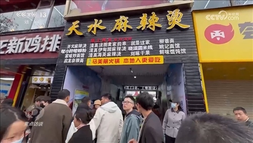 這邊,哈爾濱“冰雪盛宴”的熱度還沒散,那邊,甘肅天水的麻辣燙又火了起來。一碗手搟粉、一盤麻辣菜,燙熟后澆上兩勺油潑辣子,紅彤彤的勾引著人們的味蕾。