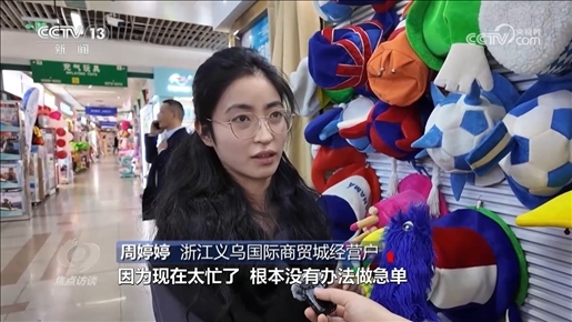 5%是今年一季度我國的進出口增速。外貿(mào)開局有力、起勢良好。在浙江義烏國際商貿(mào)城,你能直觀感受到貿(mào)易回暖的跡象。7月份,即將在巴黎舉辦的奧運會給義烏帶來了商機,商家已經(jīng)提前接到了不少訂單。