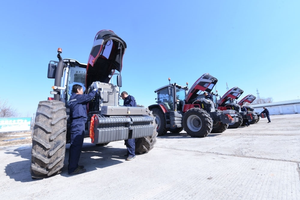 2024年3月22日,在北大荒集團建設農(nóng)場有限公司,農(nóng)機手對新引進的拖拉機進行調(diào)試。新華社記者 王松 攝