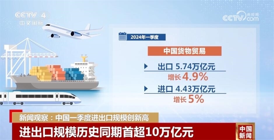 按美元計(jì)值,2024年3月,我國國際收支貨物和服務(wù)貿(mào)易出口2916億美元,進(jìn)口2780億美元,順差137億美元。