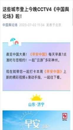 每天早7點,新媒體用戶一起床,打開《中國輿論場》,美妙的音樂喚醒耳朵,美麗的風景賞心悅目,再加上一句經(jīng)典典故,迎接美美的一天!