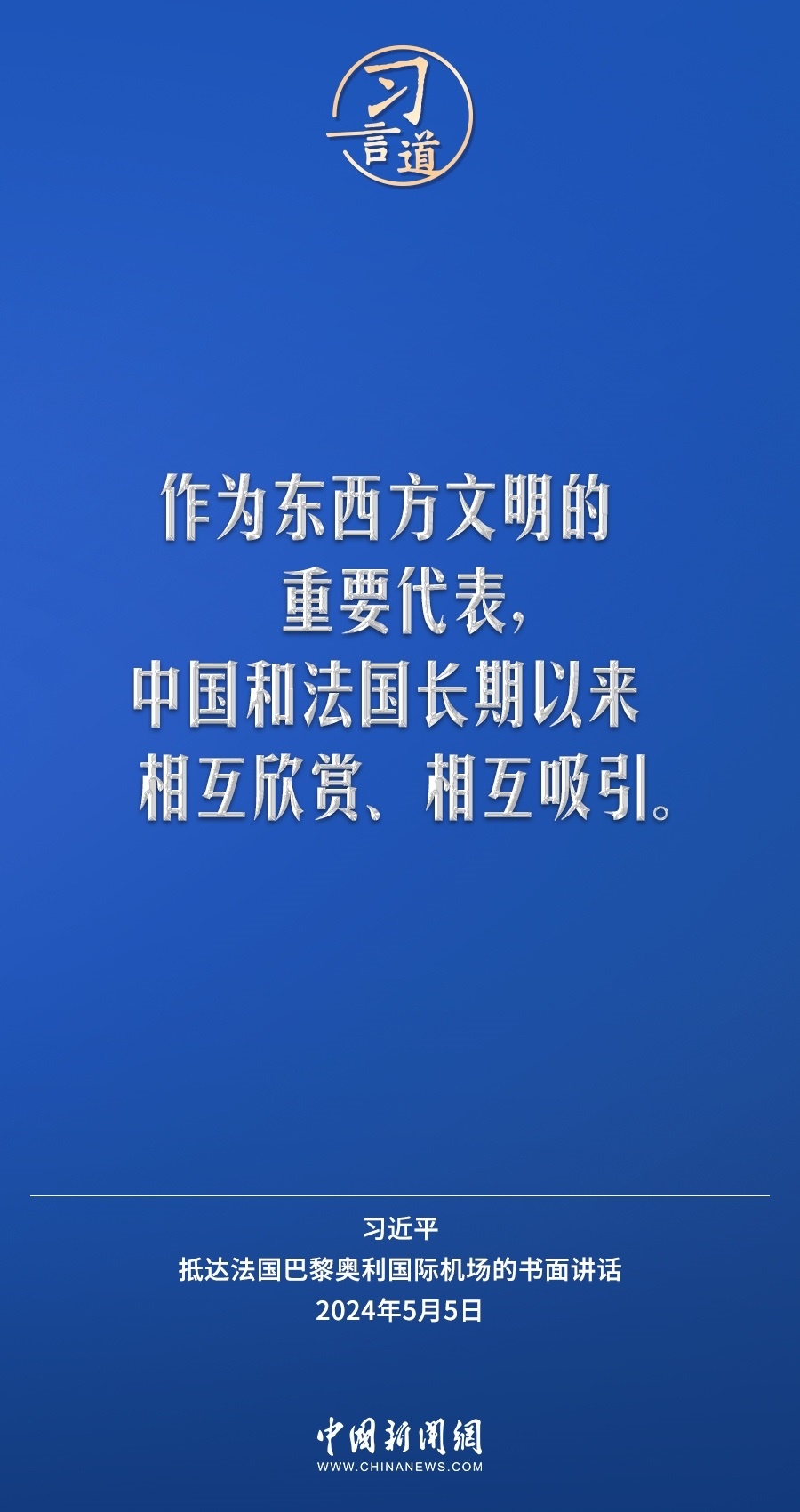 當(dāng)?shù)貢r(shí)間5月5日下午,國家主席習(xí)近平抵達(dá)巴黎,開始對法國進(jìn)行國事訪問。在抵達(dá)法國巴黎奧利國際機(jī)場的書面講話中,習(xí)近平指出——