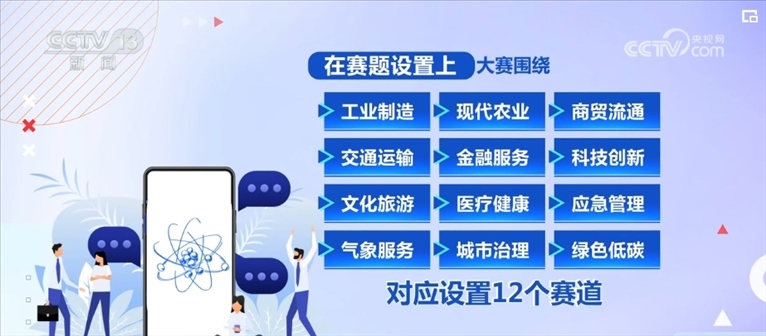 在賽題設(shè)置上,大賽圍繞工業(yè)制造、現(xiàn)代農(nóng)業(yè)、商貿(mào)流通、交通運(yùn)輸、金融服務(wù)、科技創(chuàng)新、文化旅游、醫(yī)療健康、應(yīng)急管理、氣象服務(wù)、城市治理、綠色低碳12個(gè)行業(yè)及領(lǐng)域,對應(yīng)設(shè)置12個(gè)賽道。