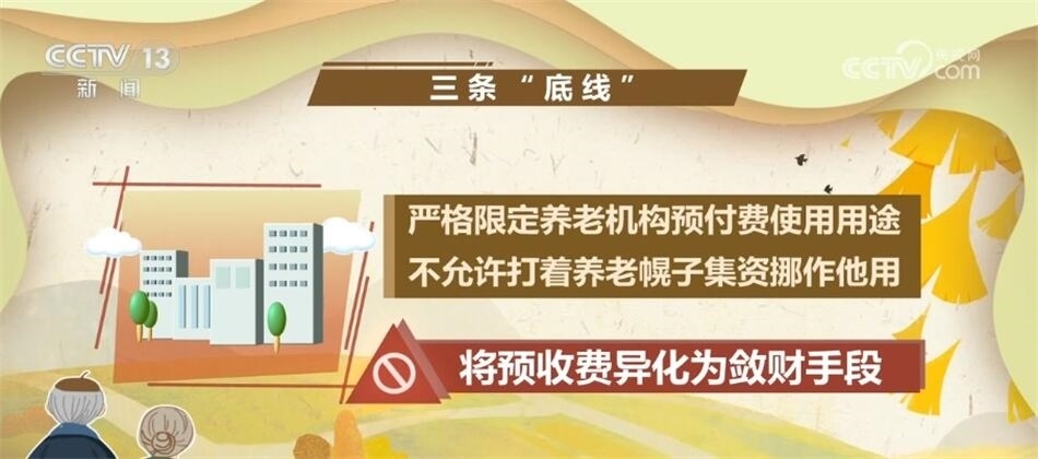 發(fā)布會(huì)上,民政部相關(guān)負(fù)責(zé)人介紹,《意見(jiàn)》還明確了三條安全“底線”:第一條是嚴(yán)禁養(yǎng)老機(jī)構(gòu)超過(guò)床位供給能力“一床多賣(mài)”;第二條是嚴(yán)格限定養(yǎng)老機(jī)構(gòu)預(yù)付費(fèi)使用用途,不允許打著養(yǎng)老幌子集資挪作他用,將預(yù)收費(fèi)異化為斂財(cái)手段;第三條是明確不得以承諾還本付息、給予其他投資回報(bào)等方式,誘導(dǎo)老年人及家屬交費(fèi),這是典型的非法集資行為。