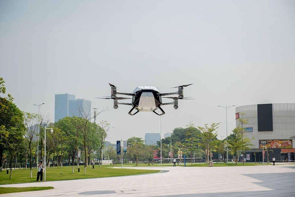 5月15日,在廣州市番禺區(qū)小鵬匯天總部,飛行汽車旅航者X2在進(jìn)行飛行演示。 新華社記者 徐嘉懿 攝