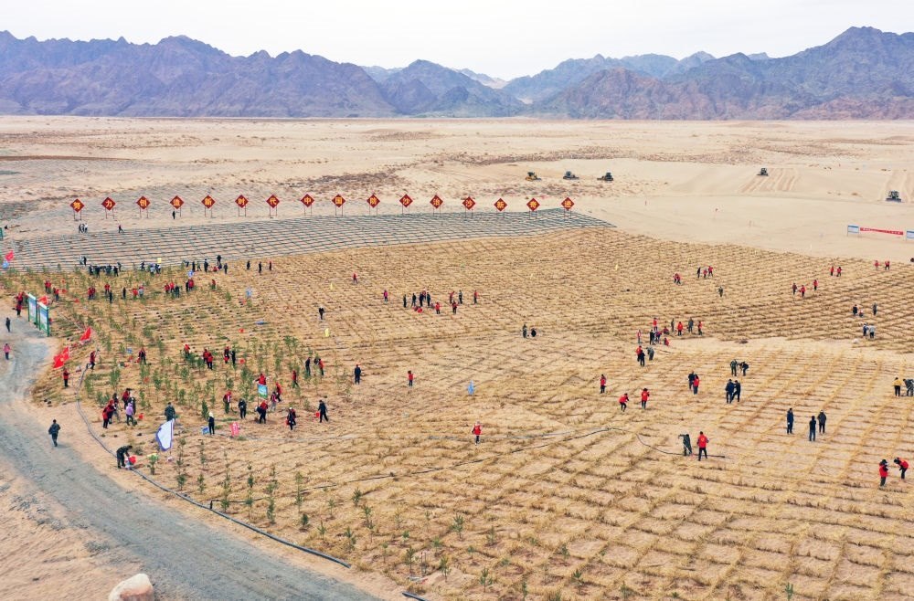 阿拉善盟位于內(nèi)蒙古最西部,盤踞在此的騰格里沙漠、巴丹吉林沙漠、烏蘭布和沙漠有連片之憂。阿拉善盟林草局局長圖布新說,一開春,阿拉善盟即全面啟動規(guī)劃治沙總面積達621.3萬畝的內(nèi)蒙古西部荒漠綜合治理項目(二期),目前已有168個作業(yè)區(qū)開工,累計完成治沙面積340余萬畝。