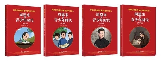 根據(jù)中共中央辦公廳印發(fā)的《關(guān)于推動(dòng)黨史學(xué)習(xí)教育常態(tài)化長(zhǎng)效化的意見》,以及教育部辦公廳印發(fā)的《關(guān)于在思政課中加強(qiáng)以黨史教育為重點(diǎn)的“四史”教育的通知》,2020年,在人民日?qǐng)?bào)社副總編輯方江山的策劃和支持下,出版社約請(qǐng)時(shí)任中國(guó)社會(huì)科學(xué)院近代史所黨委書記金民卿和周恩來侄外孫、北京大鸞翔宇慈善基金會(huì)理事長(zhǎng)沈清,主編“傳承紅色基因,培養(yǎng)時(shí)代新人”叢書。該叢書首批圖書包括《毛澤東的青少年時(shí)代》《周恩來的青少年時(shí)代》,書中截取了毛澤東、周恩來青少年時(shí)期的光輝片段,講述其成長(zhǎng)、學(xué)習(xí)經(jīng)歷和積極投身革命的艱辛歷程。同時(shí),考慮到不同年齡段學(xué)生的閱讀水平,又將圖書分為注音版、兒童版、少年版、青年版四個(gè)版本,用青少年喜聞樂見的方式,采取圖文并茂的形式,引導(dǎo)廣大青少年從小在心里深植紅色基因,樹立紅色理想。