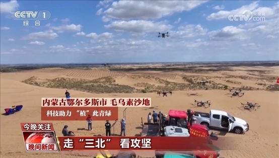 央視網(wǎng)消息:在內(nèi)蒙古毛烏素沙地,無(wú)人機(jī)飛播、機(jī)器人栽種正當(dāng)時(shí),科技助力“植”此青綠。