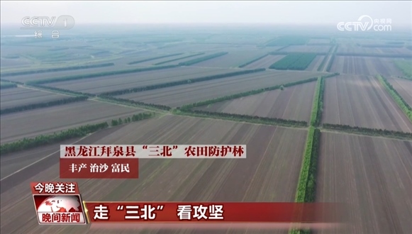 位于黑龍江的“三北”農(nóng)田防護(hù)林里,樹(shù)林呵護(hù)著田塊,種糧、治沙兩不誤。