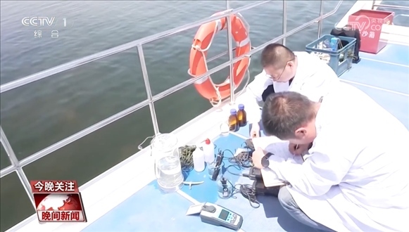 現(xiàn)場(chǎng)水樣監(jiān)測(cè)和分析顯示,水溫是32℃,PH是8.8,電導(dǎo)率是3.03,內(nèi)蒙古自治區(qū)環(huán)境監(jiān)測(cè)總站巴彥淖爾分站副站長(zhǎng)賈國(guó)慶介紹,PH和溶解氧都在合理值。
