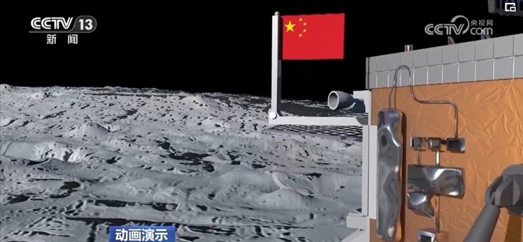 空天兔:著陸器和上升器組合體先進(jìn)行了幾個(gè)小時(shí)的鉆取,就是把一個(gè)長長的鉆頭伸入月面,可以采集月表以下的樣品,休息了幾小時(shí)后,當(dāng)鵲橋二號(hào)姐姐再次發(fā)來指令,著上組合體又用機(jī)械臂進(jìn)行了十多個(gè)小時(shí)的表取采樣,也就是一鏟子一鏟子地挖月球表面的土壤。過程很漫長,可不像你剛剛抓住我們能那么輕松。采樣完成后,一面五星紅旗在月球背面展開。哇,特別鮮艷。