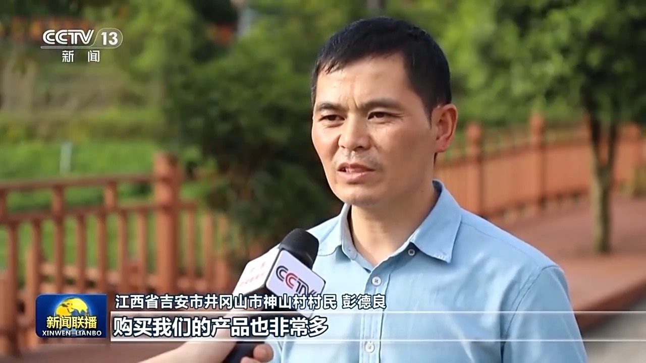 江西省吉安市井岡山市神山村村民 彭德良:游客越來(lái)越多,購(gòu)買我們的產(chǎn)品也非常多,給我們?cè)黾恿撕艽蟮氖杖搿?/p>