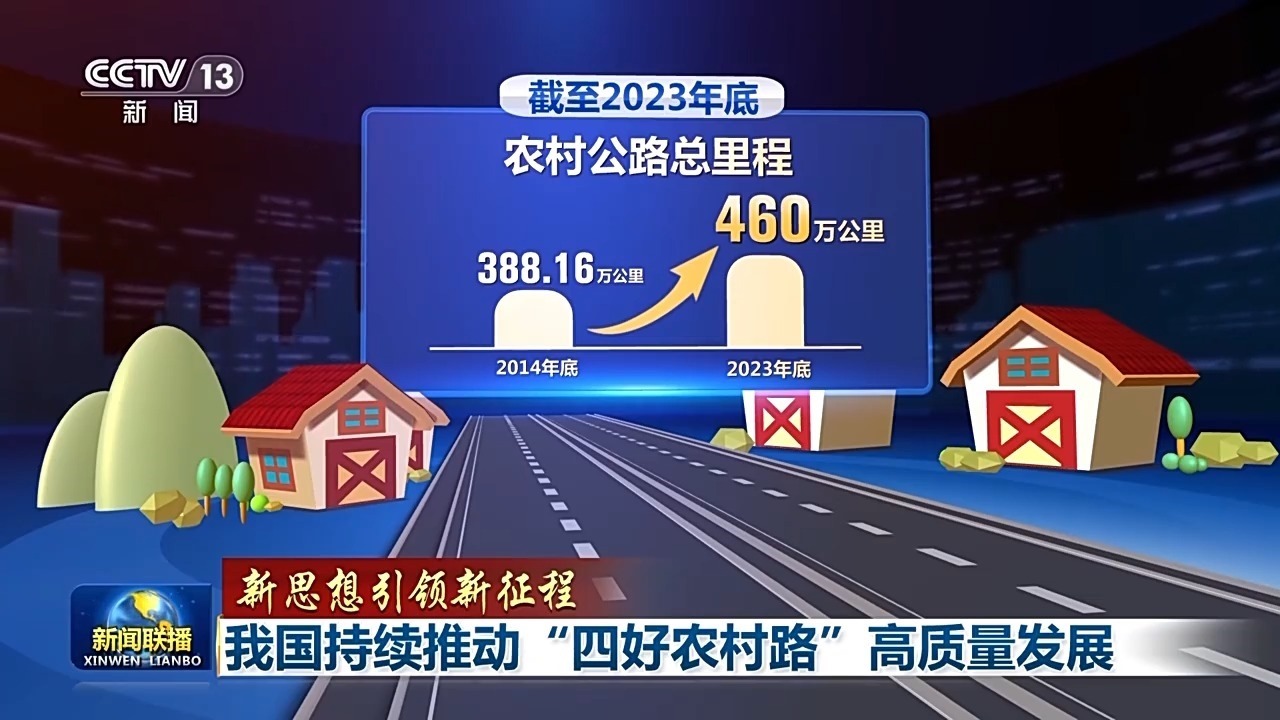 十年來(lái),農(nóng)村公路取得歷史性成就。累計(jì)投入農(nóng)村公路建設(shè)資金達(dá)4.2萬(wàn)億元,新改建農(nóng)村公路約250萬(wàn)公里,截至2023年底,農(nóng)村公路總里程從2014年底的388.16萬(wàn)公里增長(zhǎng)到了460萬(wàn)公里,農(nóng)村公路覆蓋范圍、通達(dá)深度、管養(yǎng)水平、服務(wù)能力和質(zhì)量安全顯著提高。