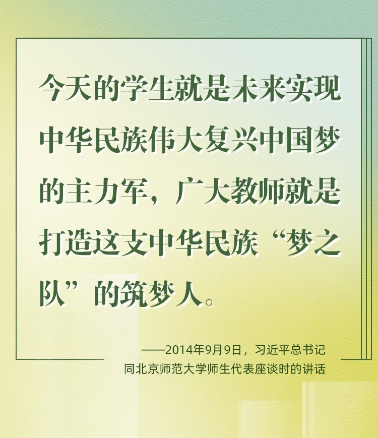 他們帶領學生前行,更新舊知、開掘新知、探索未知;他們肩負光榮使命,為黨育人、為國育才、為民育未來。守教育報國初心、擔立德樹人使命、圓民族復興之夢,建設社會主義現(xiàn)代化強國之路上,教育家精神自當念茲在茲、代代傳承、光芒永綻。