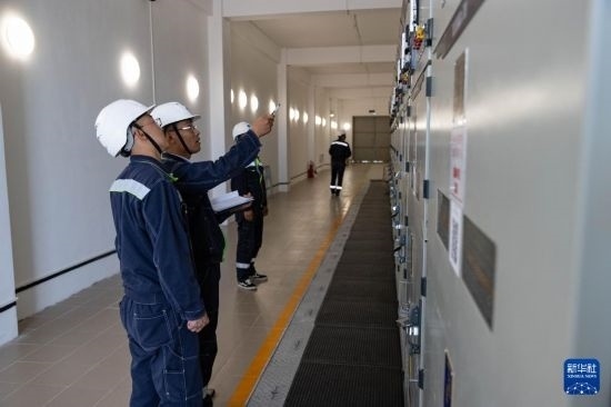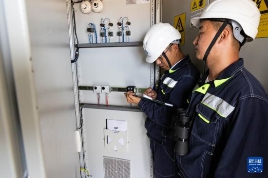 6月25日,在哈薩克斯坦阿拉木圖州謝列克風電場,中哈運行人員進行設備巡檢。白雪騏 攝