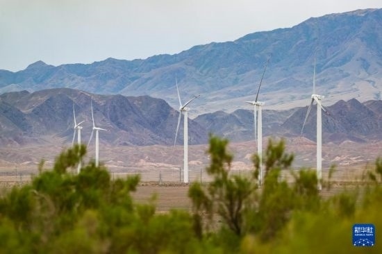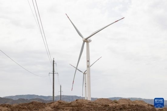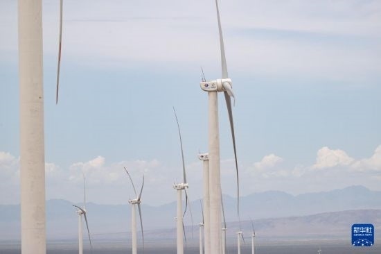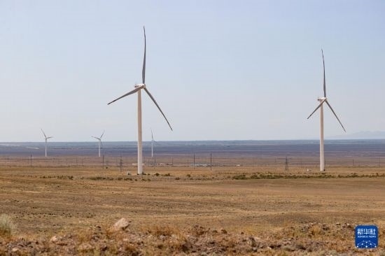 這是6月25日在哈薩克斯坦阿拉木圖州謝列克風電場拍攝的風機。白雪騏 攝