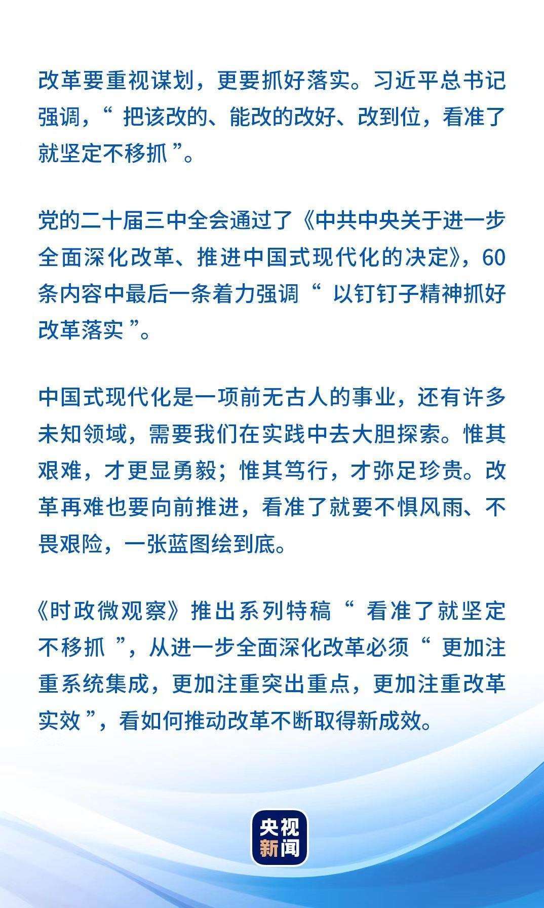 看準(zhǔn)了就堅定不移抓丨讓改革味更濃、成色更足!