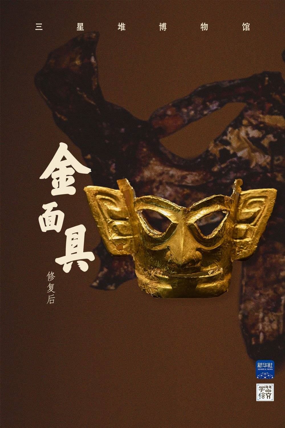 這是在三星堆博物館文物保護(hù)與修復(fù)館拍攝的修復(fù)后的金面具。