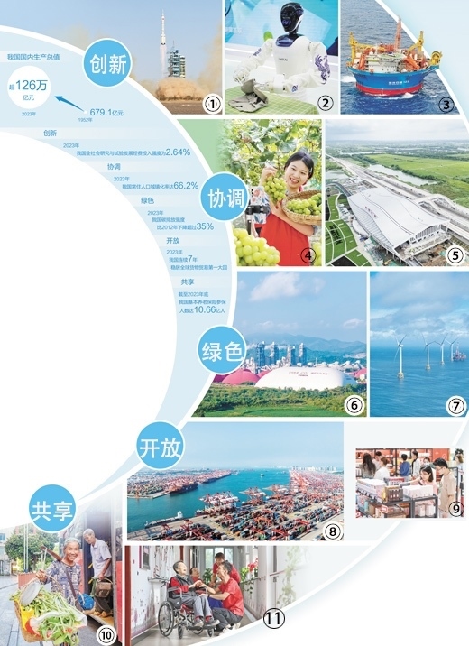創(chuàng)新、協(xié)調(diào)、綠色、開放、共享,在中國(guó)的發(fā)展版圖上奏響精彩樂章,激蕩出更加美好的未來(lái)。