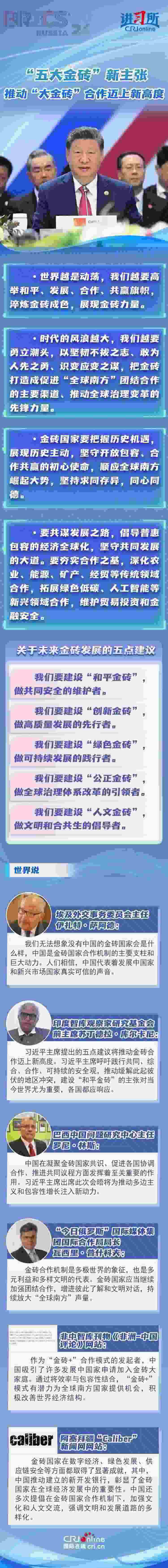 多國人士及媒體盛贊習近平主席的“五大金磚”建議將推動金磚合作邁上新高度,稱贊中國在凝聚金磚國家共識、促進各國協(xié)調(diào)合作、推進共同議程方面發(fā)揮著至關(guān)重要的作用,代表著發(fā)展中國家和新興市場國家真實可信的聲音。